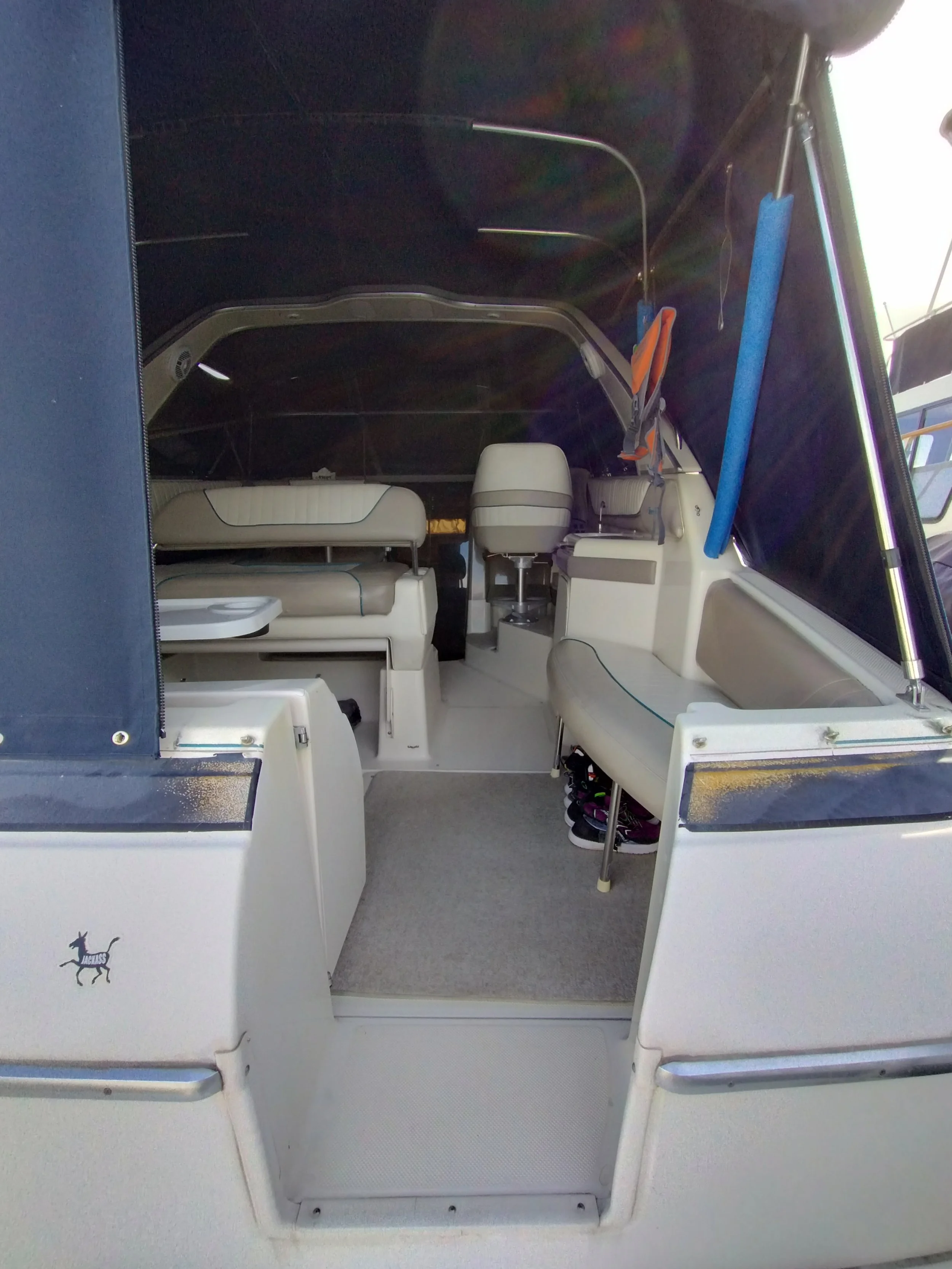 This 1996 Bayliner Avanti is powered by a MerCruiser 7.4L engine with Bravo II drive, offering dependable performance and comfortable cruising. With sleeping space for up to six and a well-appointed cabin, it's an ideal boat for weekend getaways on the water.